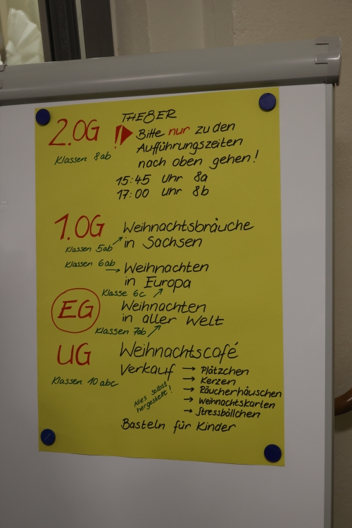 Zu den Projekttagen bereiteten die Klasssen 5 bis 7 ihre Stände mit Informationen zu "Weihnachten in Deutschland - Europa - der Welt" vor und übten so Recherchieren, Gestalten sowie Präsentieren. Da waren viele ganz schön aufgeregt und übten im Haus ihre Texte. Unterstützt von engagierten Eltern und Lehrern/Schulmitarbeitern konnten wir gelungene Ergebnisse sehen. Stolz berichteten unsere Schüler vor vielen fremden Erwachsenen. Die 8. Klassen berichteten im Saal über den Arbeitsstand des Theaterprojektes in Form kleiner Szenen. Wir bleiben gespannt. Über zahlreiche interessierte ehemalige Schüler haben wir uns sehr gefreut. Unsere 10. Klassen kümmerten sich um die Versorgung der Gäste. So hat am Ende auch der Förderverein etwas davon und kann weiter Schulprojekte unterstützen (... die nächste Landheimfahrt kommt bestimmt und in Grünheide kann man wundrbare Sportstätten buchen ...). Nachdem sich das Haus geleert hatte, saß eine zufriedene Kollegiumsrunde noch etwas im Lehrerzimmer zusammen und freute sich über die gute Stimmung zum LSE. Solche Veranstaltungen sind wichtig für unsere Schulgemeinschaft und gern wieder ....