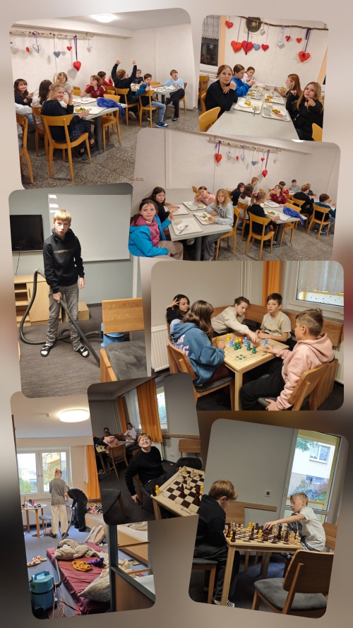Auch in der Freizeit wissen sich alle gut zu beschäftigen – es wird fleißig aufgeräumt, Schach gespielt oder einfach gemeinsam gelacht. Alle Kinder sind wohlauf, haben viel Spaß und auch das Essen kommt sehr gut an.