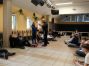 Etwas müder als am Vortag startet die Klasse mit einem ausgiebigen Frühstück. Das war auch notwendig, da es gleich im Anschluss zum Selbstverteidigungs-Workshop ging. Es gab eine kurze Wiederholung zum Verhalten in kritischen Situationen und dann wurde miteinander geübt. Dabei ging es sehr sportlich zur Sache. Den Abschluss unseres Programms "Gewaltprävention" machte ein Wettkampf in Liegestütze, Kniebeugen und Hampelmann. Dabei glänzten fast alle Kinder mit viel Biss, nicht aufzugeben auch wenn es anstrengend wurde. Dann konnte bis zum Mittag etwas Freizeit genossen werden.
