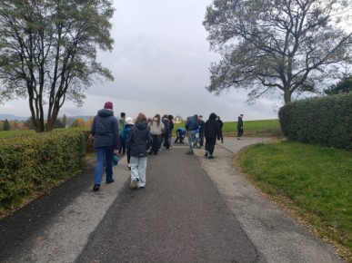 Nach dem Mittagessen gab es freie Zeit, um bereits zu packen, aufzuräumen und für die abendliche Disco alles vorzubereiten. Einige nutzten die Zeit zusätzlich zum Ausruhen, andere fanden sich für gemeinsame Gespräche und Spiele im Clubraum ein. Dann ging es bei noch schönem Wetter los Richtung Seifhennersdorf. 4 km Berg und Tal waren zu absolvieren. Auf dem Weg zogen dichte Wolken auf und es begann zu nieseln. Etwas nass kamen wir in der Buhlener Scheune an, wo uns ein ehemaliger Wissenschaftler empfing. Mit seiner ruhigen und interessierten Art ließ er uns Fossilien und paläontologische Funde untersuchen. Dann ging es in den Hof, um kleine Krabbeltiere mit der Lupe zu untersuchen. Neben vielen chinesischen Marienkäfern wurden auch Wanzen, Motten und größere Spinnen gefangen und untersucht. Nachdem alle Tiere ihre Freiheit wieder hatten, ging es zurück in den Lehrraum, wo wir Sand aus der Ur-Elbe so präparierten, dass die darin enthaltenen Edelsteinchen freigelegt wurden. Diese konnten wir unter dem Mikroskop genauer untersuchen und bekamen unsere Probe sogar als Souvenir mit.