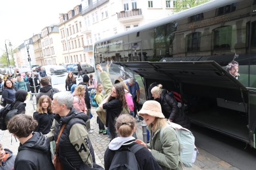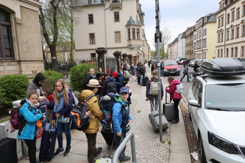 Stau auf der Autobahn um Dresden herum verzögerte etwas die Ankunft an der Schule, aber es war alles noch im Rahmen. Die Busse kamen durch und die Eltern haben die Schule nicht zugeparkt. Danke, dass auch dies wieder mit Vernunft geklappt hat.
