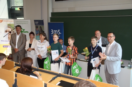 Ende Juni wurde er in Görlitz ausgezeichnet. Er hatte einen schönen tag mit informatischen Erlebnissen in workshops an der Hochschule Zittau-Görlitz und lernte auch etwas zum 3D-druck kennen. Dann gab es unter den Augen seiner Eltern und von TC-C-Lehrerin Frau Mohaupt die Preisverleihung.