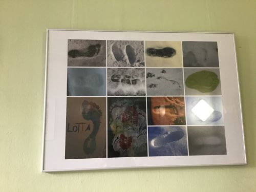 Frau Mohaupt bekam eine Menge Fußabdrücke zugeschickt und hat diese dann zusammengestellt. Nun sieht mit Eurer Hilfe und dem Einsatz von Frau Mohaupt, Frau Plischke und Herrn Haynert unser Eingangsbereich auf der linken Seite deutlich schöner aus und auf der rechten Seite "etwas schöner" (für die Leitungstrassen vom Brandschutz können wir nichts...). Wir sagen ganz doll DANKESCHÖN und freuen uns über die neue Gestaltung. Seht selbst hier auf unserer Schulhomepage und hoffentlich bald persönlich im Haus.