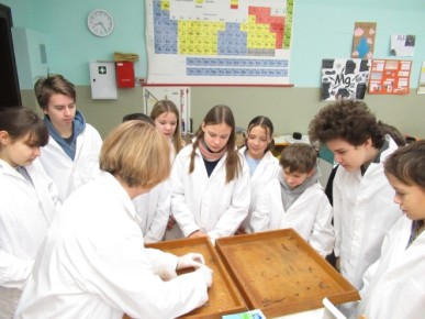 In unseren 6. Klassen gab es eine besondere Stunde im Fach Naturphänomene. Man konnte einen dataillierten Blick ins Auge werfen, genauer in die Augen von Kühen bzw. Schafen. Beim Sezieren wurden die einzelnen Bestandteile sehr deutlich. Die Schüler waren mit Kittel und Handschuhen ganz eifrig dabei. Vielen Dank an Frau Henke und Frau Busch für das Engagement. Toll, dass viele ihren anfänglichen Ekel überwunden haben und diszipliniert dabei waren. Der Spruch "einmal ein Auge drauf werfen" wurde nicht Wirklichkeit und alles konnte hygienisch ablaufen. wink