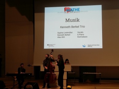 04.02.2020 - Vielleicht erkennt Ihr das Logo über der Bühne? Mathe im Advent! Unsere jahrgangsübergreifende Startergruppe 7-10 hat beim Knobeladventskalender sehr gut abgeschnitten. Na logisch, kann man meinen: Es waren ja die Interessierten dabei. Aber es war wirklich so, dass diesmal fast alle sehr gut durchgehalten haben und gute Ergebnisse erreichten. Und so erarbeiteten die Schüler einen 2. Preis, gemeinsam mit anderen Klassen und Gruppen bzw. Schulen. Am 24.1.2020 fand die Auszeichnung in Berlin statt und Familie Nehm mit Teilnehmerin Nora konnten den Preis stellvertretend für unsere Schule in Empfang nehmen. Es war ein schönes Erlebnis, wurde berichtet. Vielen Dank, nicht zuletzt auch für die Bilder der Veranstaltung.