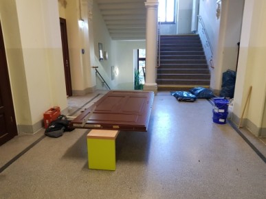 Während sich die Schüler, Lehrer und weiteren Mitarbeiter unserer Schule erholen können und es im Haus ruhiger ist, sind fleißige Handwerker aktiv.