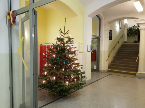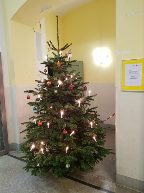 Schon fast traditionell kommt der Baum als Spende über die Elternschaft von hornbach. Herr Nietzold kümmerte sich wieder darum. Vielen Dank dafür. Unser Hausmeister Herr Haynert schmückte den Baum und so wird man im Eingangsbereich in der Adventszeit freundlich empfangen.