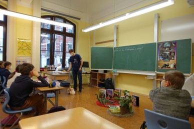 Saurier-Experte Tom Petzold beantwortete zuerst in der 5a dann in der 5b die vielen Fragen der Schülerinnen und Schüler, die Kinder waren mit Feuereifer dabei und die Unterrichtszeit verging wie im Flug: Woher weiß man welche Farben die Dinos hatten? Können Saurier wieder zum Leben erweckt werden, wie im Film Jurassic Park oder anders? Wie kommen die zu ihren komplizierten Namen? Wozu dienten die Federn? Was tue ich wenn ich Fossilien in meinem Garten finde? Warum ist der Vogel Strauß ein Saurier? Und - wie werde ich selbst Saurier-Experte? Dies waren nur einige der Fragen, die unser Experte zu beantworten wusste.