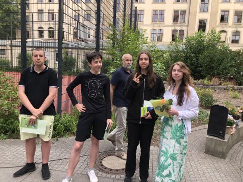 Auszeichnungen gab es für die Biologie-Olympiade (1. Richard Kl. 7 / 1. Konstantin und Lennart Kl. 8), den Geografiewettbewerb "Diercke Wissen" (1. Conrad (Kl. 5/6)) und für die 2. Stufe des Informatikwettbewerbes, wo die Auszeichnungen der 2. Stufe in der Region Dresden nachgereicht wurden (David 6c Platz 1 in Kl. 5/6, Moritz 8b Platz 2 in Kl. 9, Laurens 10b Platz 2 in Kl. 10 und Jacob 7a Platz 3 in Kl. 7/8).