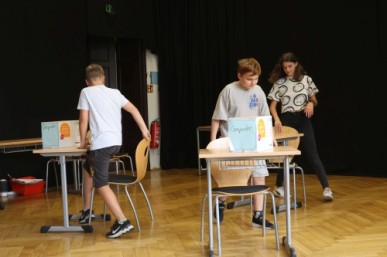 02.09.2022 Mit einem kleinen Programm zum Schulalltag begrüßten unsere 6. Klassen die neuen „Fünfer“ an unserer Schule. Dabei wurde in witzigen kleinen Szenen der Schulalltag vorgestellt. Sekretariat, Schulleitung, Hofpause, Streitschlichter, Sportfest … Es gab viel zu sehen.