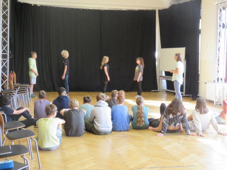 13.09.2022 - Der Start ins Theaterprojekt konnte in diesem Schuljahr wieder geregelt für die beiden 8. Klassen erfolgen. Beim Ausprobieren und theaterpraktischen Aufwärmen wurde bisher schon viel gezeigt, gespielt und gelacht…
