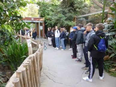 12.10.2022 - "Tiere im Regenwald", das trifft das Thema des heutigen überaus lehrreichen Ausflugs in die Zooschule aus Sicht eines Nicht-Biologielehrers ganz gut. Die Angepasstheit verschiedener kleiner und größerer Tiere an den Regenwald bekam die 9a in 3 Stunden in Theorie und Praxis nahegebracht - neben dem auszufüllenden Arbeitsblatt wurde in den verschiedenen Häusern des Zoos geschwitzt, sich vor getarnten Dschungelnymphen erschreckt und geekelt sowie das Guereza-Affenbaby für süß befunden. Natürlich stets begleitet von den dazugehörigen Beobachtungsaufgaben! Ablenkung gab es dann doch noch durch die ortsansässigen Faultiere, die sogleich Kontakt zur 9a aufnahmen...
