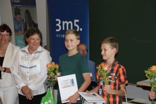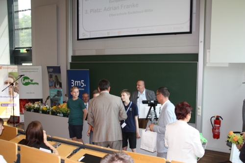 Ende Juni wurde er in Görlitz ausgezeichnet. Er hatte einen schönen tag mit informatischen Erlebnissen in workshops an der Hochschule Zittau-Görlitz und lernte auch etwas zum 3D-druck kennen. Dann gab es unter den Augen seiner Eltern und von TC-C-Lehrerin Frau Mohaupt die Preisverleihung.