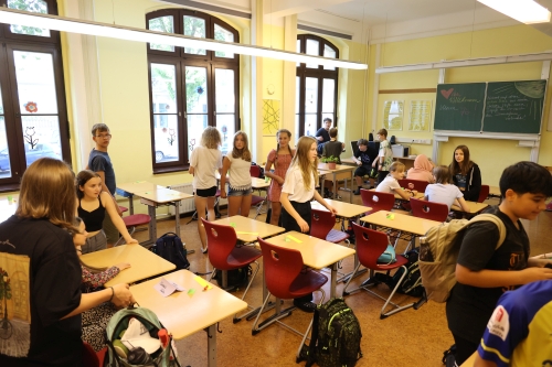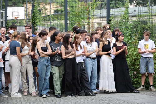 21.08.2023 - Am 21.8. ging es sonnig zunächst in den Klassen und kurz vor der Hofpause auch gemeinsam auf dem Hof für unsere Schulgemeinschaft los. Und erwartet ein neues Schuljahr mit Theater, dt.-frz. Schüleraustausch (an die Jüngeren: macht Euch schlau!), Sportfest, Wettbewerben, Projekten, Prüfungen und ganz viel Unterricht.