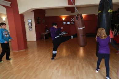 Von Frau Zadlo organisiert war unsere 5a mit Frau Kruse und Herrn Dreyer beim NugMui e.V. zu einem Selbstverteidigungskurs. Herr Eckstein demonstrierte Bewegungsabläufe und dann waren die Schüler mit dem Training dran. Die Boxsäcke waren zwar nicht Kursbestandteil, aber recht beliebt ;-) Zum Ende konnten sich die Kinder beim Mattenkampf nach klaren Regeln gegenseitig messen. Da hatten auch viele Ihr Vergnügen. (D. Dreyer)