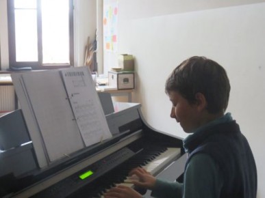 Im Musikunterricht bei Frau Gündel stellten Schüler unserer 5b ihren musikalischen Steckbrief vor. Die Schüler sollen zeigen, was sie können und "ihre Talente" präsentieren. Frederik spielte im Saal am Klavier und Jasmin tanzte dazu. Die Mitschüler staunten und schauten bzw. hörten gespannt zu. Frau Gündel berichtet von einer tollen Atmosphäre im Raum. Schön, wenn Schüler ihre außerschulischen Fähigkeiten hier präsentieren. Auch weitere Klassenkameraden waren gut musikalisch unterwegs (und wollten hier nicht aufs Bild = akzeptiert!). Da können wir auf unser Talentefest gespannt sein.