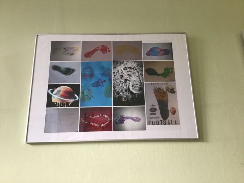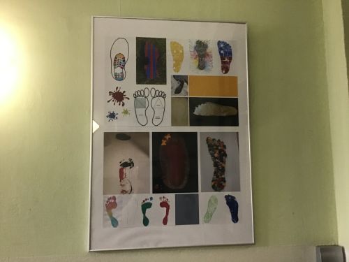 Frau Mohaupt bekam eine Menge Fußabdrücke zugeschickt und hat diese dann zusammengestellt. Nun sieht mit Eurer Hilfe und dem Einsatz von Frau Mohaupt, Frau Plischke und Herrn Haynert unser Eingangsbereich auf der linken Seite deutlich schöner aus und auf der rechten Seite "etwas schöner" (für die Leitungstrassen vom Brandschutz können wir nichts...). Wir sagen ganz doll DANKESCHÖN und freuen uns über die neue Gestaltung. Seht selbst hier auf unserer Schulhomepage und hoffentlich bald persönlich im Haus.