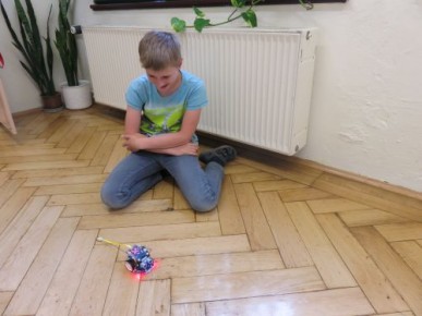 So wurde probiert, falsch gemacht und korrigiert, bis das Teil fuhr und z.B. die Linie erkannte bzw. nach einer bestimmten Strecke anhielt. Freude bereitete das bunte Blinken, was dem Teil auch erst einmal beigebracht sein wollte.