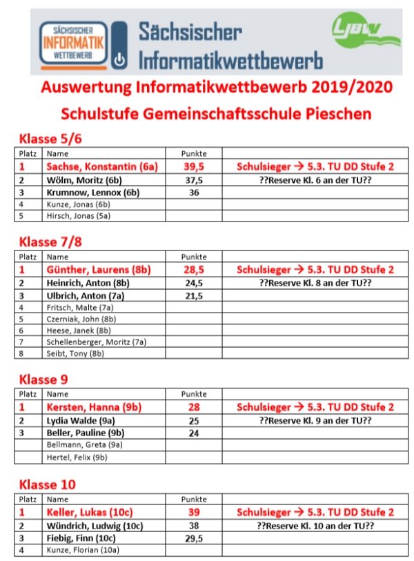 Informatikwettbewerb 2020 1. Runde Ergebnisse