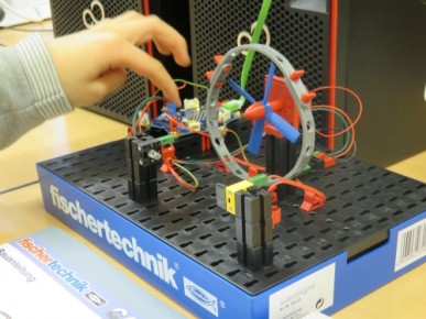 06.02.2020 - Mit Unterstützung des Schulverwaltungsamtes verbessern sich die Lernbedingungen in unserem "alten Gemäuer" weiter. Vielen Dank! Nach den guten Erfahrungen mit den Calliope mini sind nun Fischertechnik-Baukästen für die Calliope mini eingetroffen und wurden von der Computer-Roboter-Arduino-Gruppe um Herrn Dreyer in Beschlag genommen. Es laufen die ersten Aufbauten, die gleich getestet wurden: Verkehrsampel, Handtrockner und Parkplatzschranke mit Lichtschranke zum Öffnen geben die Baukästen her. Nach dem Aufbau mit den neuen Calliopes muss eifrig programmiert werden, damit alles funktioniert. Im Lernbereich "Algorithmierung" in Informatik Klassenstufe 8 werden nach der einfachen "Karol-Einführung" wieder die Calliope mini solo sowie mit den neuen Kästen zum Einsatz kommen. Umwelt begreifen, könnte man auch sagen.