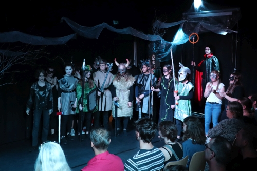 Alle unsere Schülerinnen und Schüler der 8. Klassen nehmen mit zwei Wochenstunden am Unterrichtsfach Theater teil (siehe hier: Stundentafel). In dieser Zeit und an einigen Projekttagen bzw. Projektwochen entsteht ein Theaterstück, das zum Schuljahresende mehrmals öffentlich aufgeführt wird.